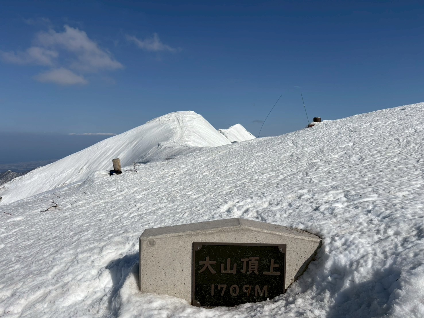 TOした瞬間、主稜線は南風の爆風。それでも弥山から主稜線を剣ヶ峰方面へ2/3まで進みましたが、風は危険レベルだったため弥山に引き返し、元谷避難小屋へ帰営しました。24日に下山し帰路につきました。これまで冬の大山でこれだけの晴天は本当に貴重。